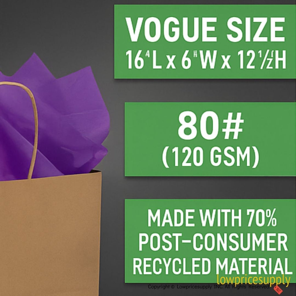 Ideal for carrying bulky merchandise such as coats, home décor, or groceries. Generous size provides extra space for multiple items, improving customer convenience. Crafted from strong #80 (120 GSM) paper for reliable performance. Eco-Friendly and made from 100% recyclable materials. Item color in photos may appear slightly different due to lighting. Please refer to the description for accurate details.