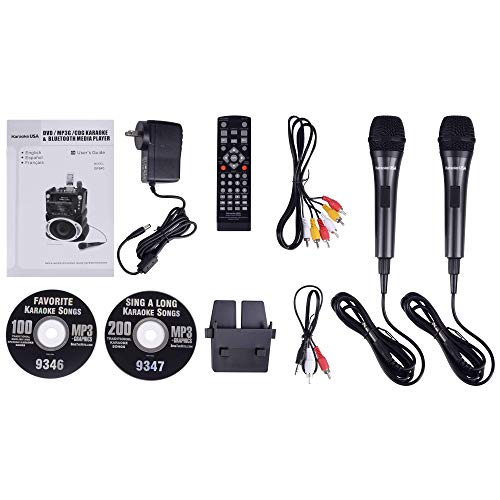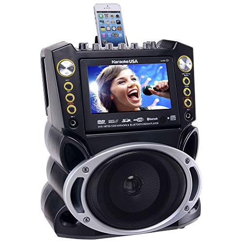 Details: Product Description Enjoy your music and sing your favorite songs wirelessly. This Bluetooth Karaoke Machine from Karaoke USA provides innovative features that will keep any karaoke enthusiast busy. This machine comes with 300 MP3G songs on disc, but will play any normal karaoke CDG or DVD. It will even accept auxiliary input from most any personal player or gaming console. From the Manufacturer Karaoke USA GF844 Complete Bluetooth Karaoke Machine with 7" TFT Color Screen, Record Function