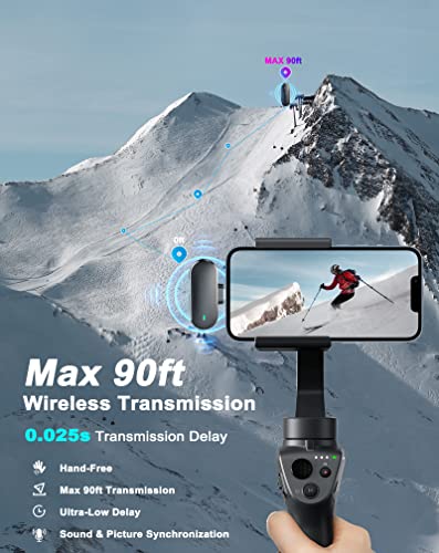 • Wireless System & Mini Design: The wireless mic for iphone is inserted with Bluetooth technology for long-distance transmission without wires, up to 90 feet. Half a finger-sized iphone microphone is lightweight and portable. Small design but is very powerful.