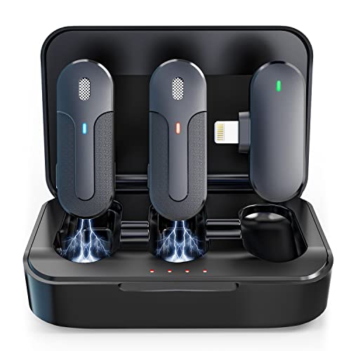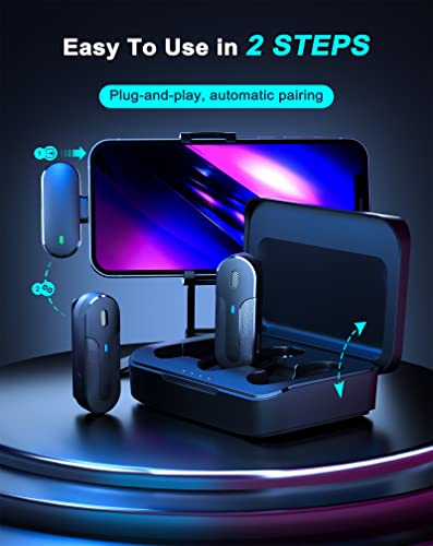 VIOK Wireless Lavalier Microphone for iPhone iPad, 2 Pack Mini Microphone with Charging Case, 2.4G Ultra-Low Delay 90ft Transmission Wireless Mic for Video Recording, Vlog, Interview, Tiktok, YouTube